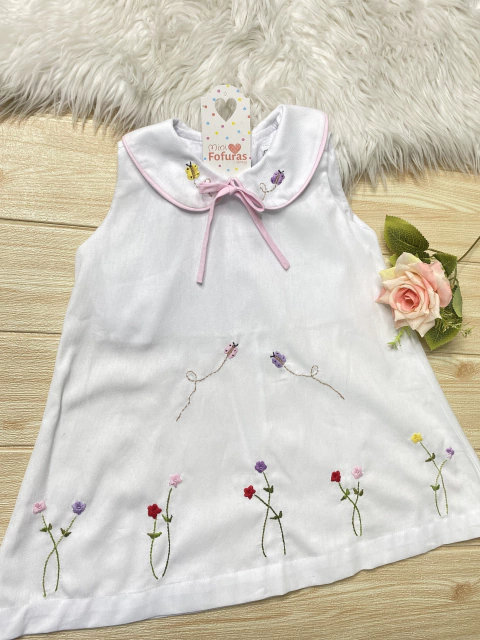 Descubra o encantador Vestido Livia, uma peça única que combina conforto e estilo. Feito em 100% algodão, este vestido é perfeito para a delicada pele das crianças. Seu design apresenta um lindo e delicado bordado feito à mão, que traz um toque especial e exclusivo.